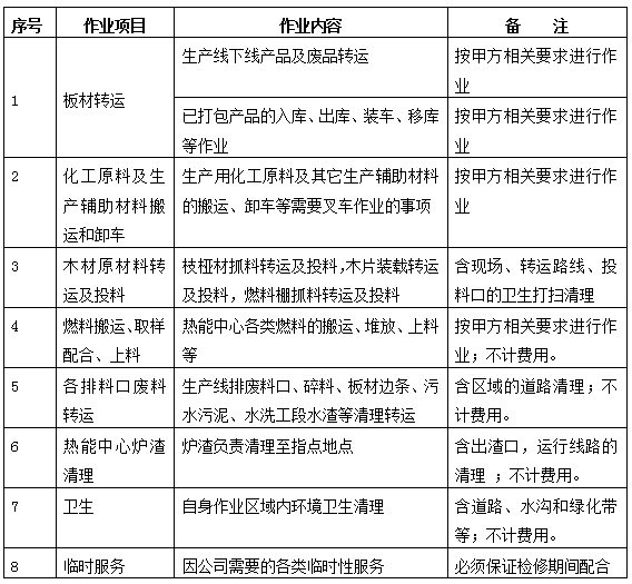 滿足我方24小時(shí)不間斷作業(yè),將我生產(chǎn)所需的木片、燃料、水渣、廢料、灰渣等按要求轉(zhuǎn)運(yùn)到我方指定區(qū)域。在我方生產(chǎn)設(shè)備檢修期間必須按我方需要協(xié)助檢修工作。