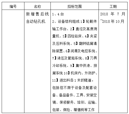 大亞車輪制造有限公司新增售后線自動鉆孔機項目招標公告