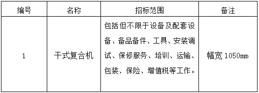 本招標項目干式復合機采購招標項目已批準建設,招標人為江蘇大亞印務有限價公司,建設資金來自自籌 (資金來源)。項目已具備招標條件,現進行公開招標,特邀請有興趣的潛在投標人(以下簡稱申請人)提出資格預審申請。
