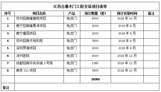 本招標(biāo)項(xiàng)目 2018年木門工程安裝項(xiàng)目 (項(xiàng)目名稱)已批準(zhǔn)建設(shè),招標(biāo)人為 江蘇合雅木門有限公司 ,建設(shè)資金來自 自籌 (資金來源)。項(xiàng)目已具備招標(biāo)條件,現(xiàn)進(jìn)行公開招標(biāo),特邀請(qǐng)有興趣的潛在投標(biāo)人(以下簡稱申請(qǐng)人)提出資格預(yù)審申請(qǐng)。