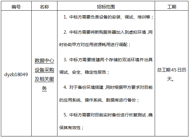 數(shù)據(jù)中心設(shè)備采購(gòu)及相關(guān)服務(wù)招標(biāo)公告