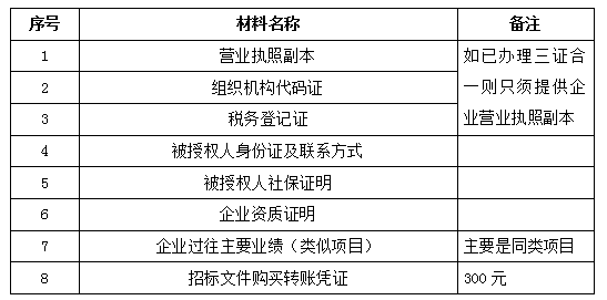 2、 凡有意向參加投標(biāo)者,請(qǐng)?jiān)谏鲜銎陂g內(nèi)按下表提供報(bào)名資料,相關(guān)證明文件的原件如無(wú)法提供原件則提供復(fù)印件加蓋公司公章,投標(biāo)人須將上述資料的掃描件發(fā)郵件至招標(biāo)聯(lián)系人處進(jìn)行報(bào)名。