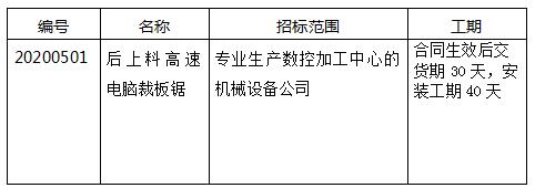 合雅木門后上料高速電腦裁板鋸項目招標公告
