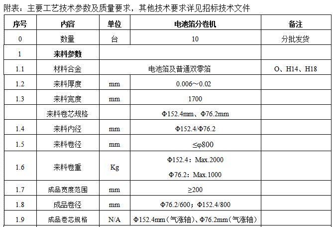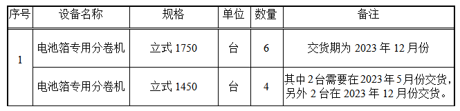 電池箔分卷機采購項目