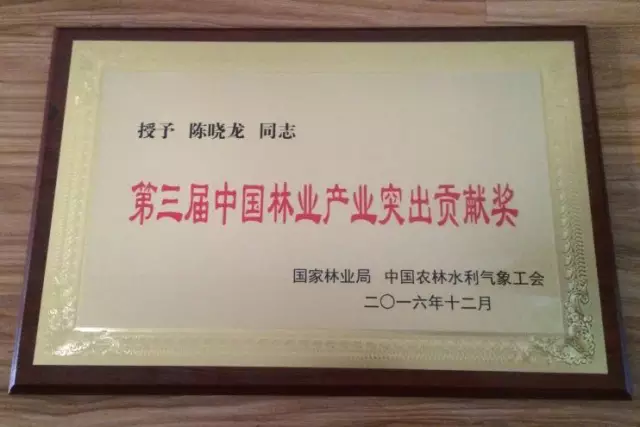 董事局主席、總裁陳曉龍先生榮獲“第三屆中國(guó)林業(yè)產(chǎn)業(yè)突出貢獻(xiàn)獎(jiǎng)”(個(gè)人獎(jiǎng))