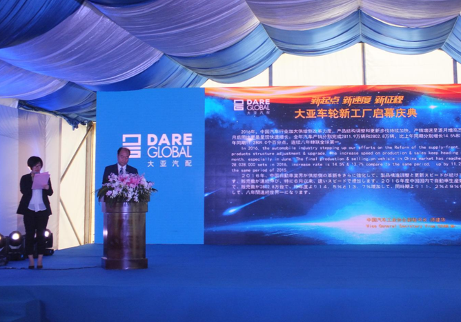 中國(guó)汽車工業(yè)協(xié)助副秘書長(zhǎng)對(duì)大亞車輪新工廠啟幕表示祝賀,他堅(jiān)信在新的工作環(huán)境中,在行業(yè)快速發(fā)展的大背景下,在國(guó)家經(jīng)濟(jì)“脫虛向?qū)?rdquo;的主導(dǎo)下,大亞車輪制造有限公司一定可以實(shí)現(xiàn)更大的發(fā)展,取得更加輝煌的成就。