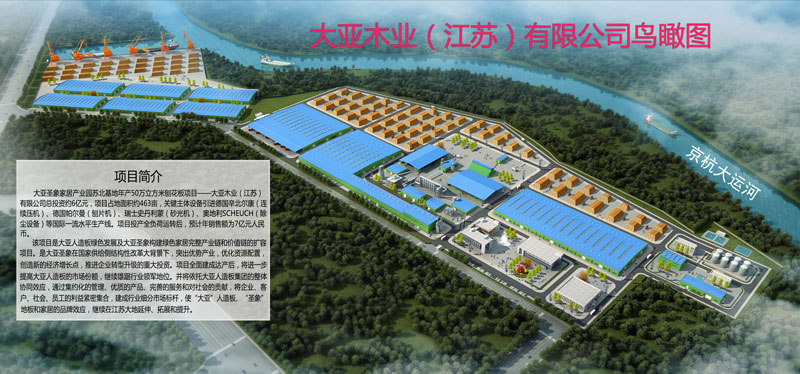 2017年1月大亞圣象家居產(chǎn)業(yè)園一期項目落戶于宿遷市宿城區(qū)運河宿遷港產(chǎn)業(yè)園,項目年產(chǎn)50萬立方米刨花板,總投資6億元,項目占地面積約450畝,項目投產(chǎn)全負荷運轉(zhuǎn)后,預(yù)計年銷售額為7億元人民幣。