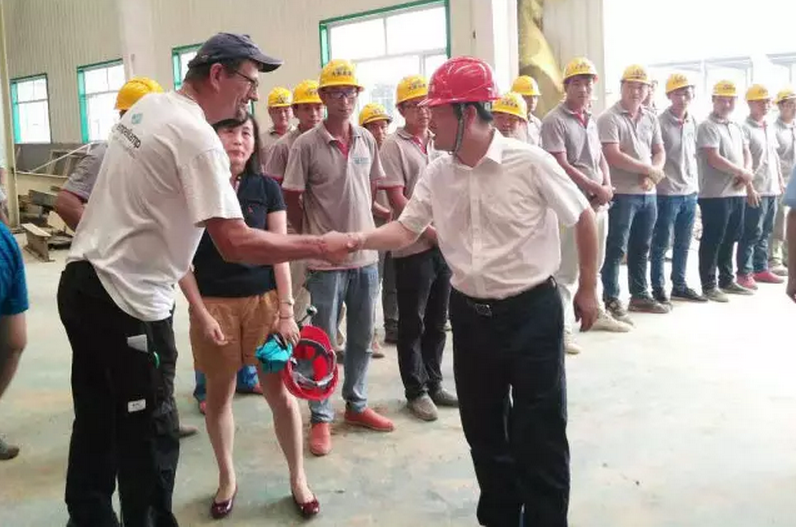 在項目建設(shè)安裝現(xiàn)場,仲總向奮戰(zhàn)在一線的中外工程建設(shè)人員贈送了慰問品,對全體建設(shè)者展現(xiàn)出的大亞人特有的“追求卓越,挑戰(zhàn)極限;創(chuàng)新發(fā)展,敢于擔當”精神風貌表示由衷的敬意。仲總帶領(lǐng)大家深入設(shè)備安裝現(xiàn)場、廠房、堆場等詳細察看和了解項目建設(shè)與推進進度、工程質(zhì)量與安全,并囑咐大家一定要做好防暑降溫工作,保證全體中外建設(shè)人員的安全與生活,特別強調(diào)了設(shè)備安裝質(zhì)量和安全,按康總確立的三個建設(shè)時間節(jié)點的目標有序推進,確保按時、保質(zhì)、安全完成設(shè)備安裝和項目整體建設(shè)任務(wù),努力把該項目建設(shè)成全球人造板行業(yè)精品工程。