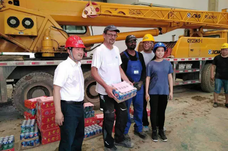 2017年8月7日,人造板集團副總裁仲宏年帶領(lǐng)總部各部門責任人,帶著陳曉龍董事長的關(guān)懷,赴大亞木業(yè)宿遷項目工程建設(shè)工地,慰問戰(zhàn)高溫,斗酷暑,奮戰(zhàn)在工程建設(shè)第一線的全體中外工程建設(shè)人員。
