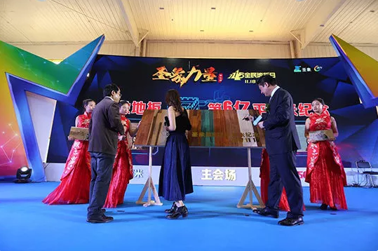 今年,圣象榮獲中國500最具價值品牌,品牌價值達345.68億元。這些數字讓圣象人深感驕傲。而今天,圣象又用實力為大家創造了一份記錄——圣象第六億平米地板正式下線。很多人對“6億”這個數字沒有概念,具象化來說,6億平米的地板可圍繞地球48圈,覆蓋20座萬里長城!丹陽市統計局副局長盛躍軍先生宣讀了這一權威統計數據。