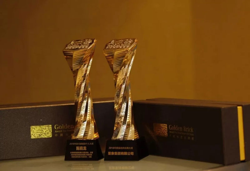 今年圣象不僅再次斬獲中國地產金磚獎·2018年度最佳供應商大獎,大亞圣象家居股份有限公司董事長,圣象集團有限公司董事長陳曉龍先生也榮獲中國地產金磚獎·2018年度卓越成就個人大獎。