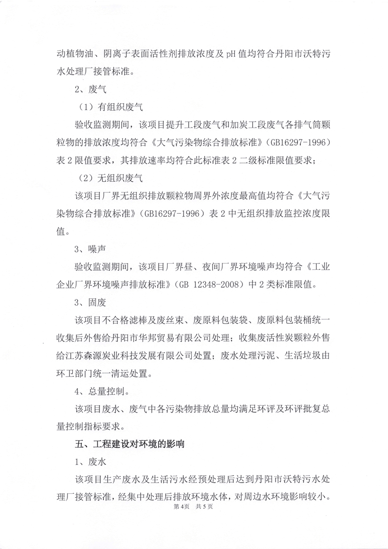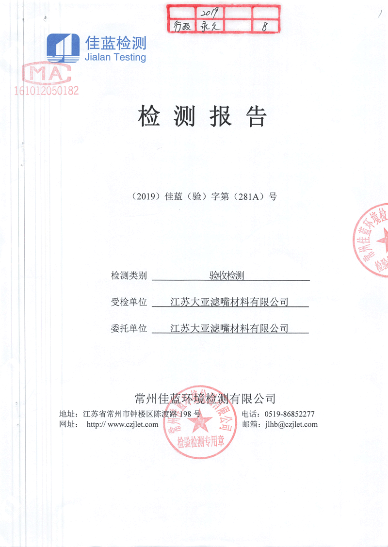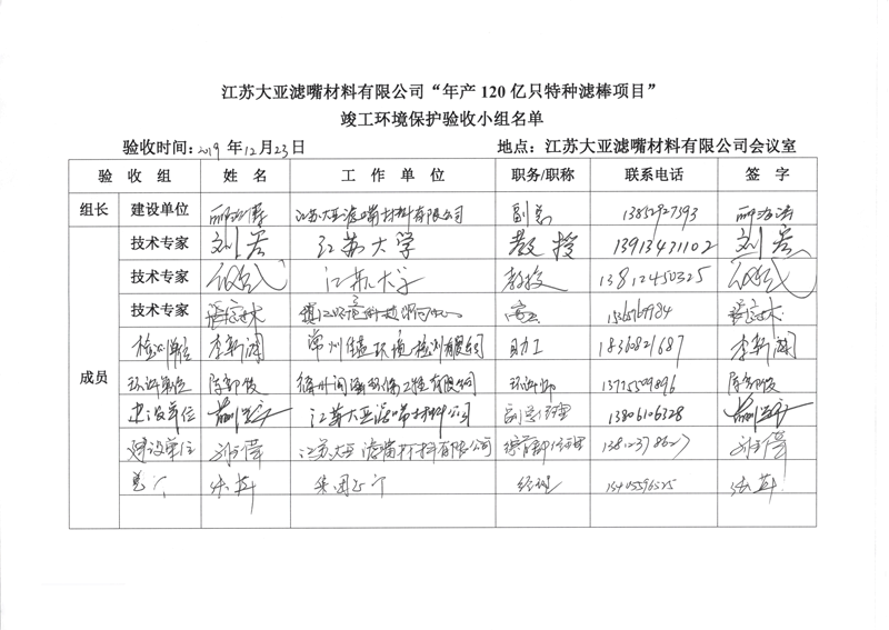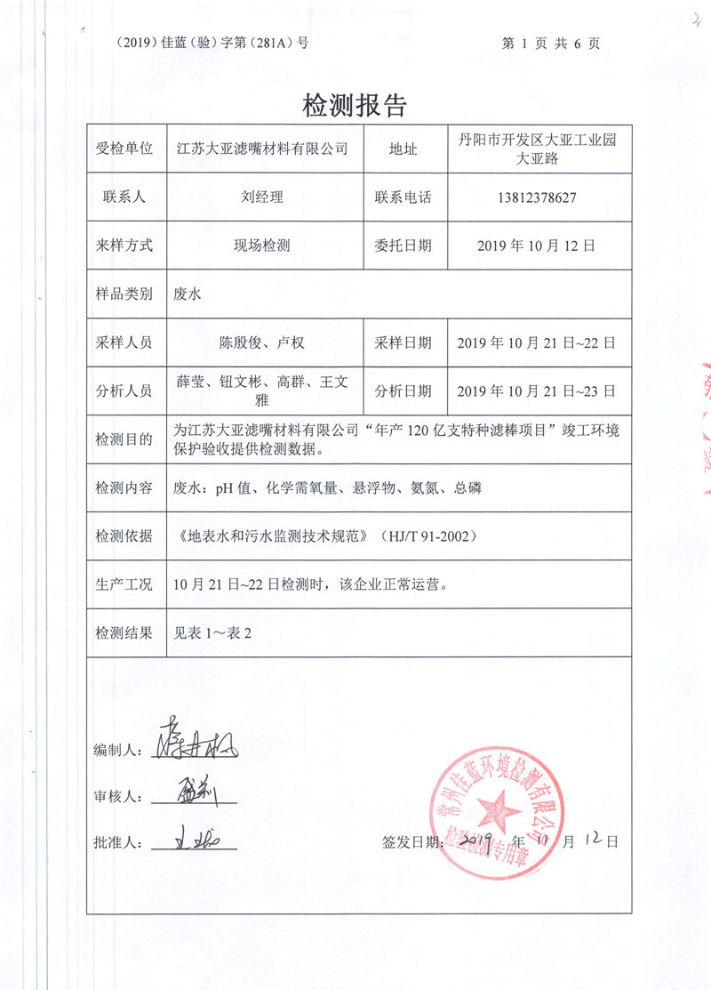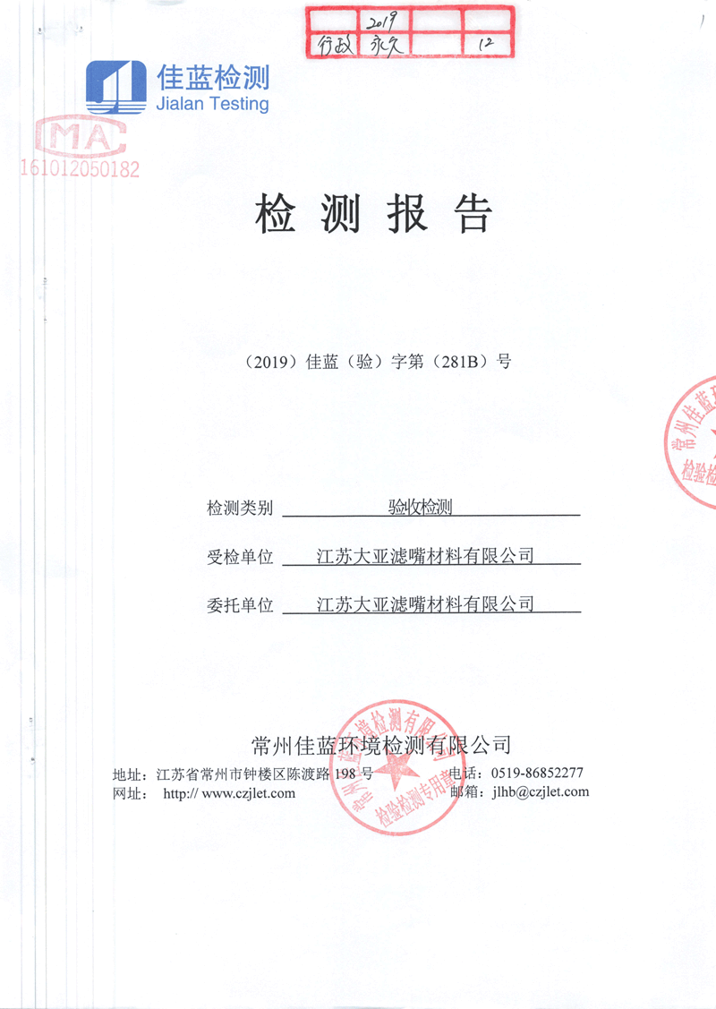 江蘇大亞濾嘴材料有限公司年產120億支特種濾棒項目環境保護驗收監測情況自主公示