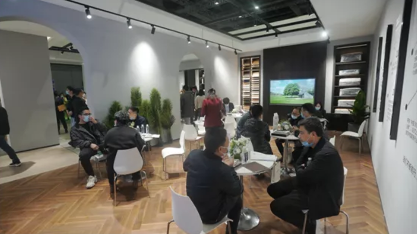 展館現(xiàn)場,圣象整裝設計+和圣象商用地材協(xié)同參展,全面展示了圣象多維立體產(chǎn)品架構的體系模式。