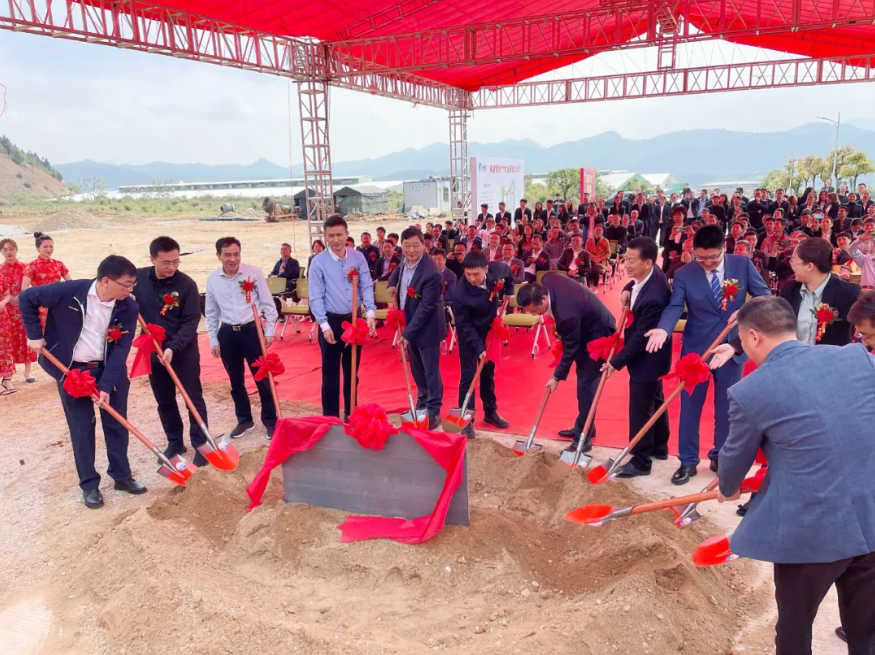 由建甌市市委書記陳建新先生、建甌市副書記、市長周安有先生、建甌市市委副書記楊鑾女士、建甌市市委常委、副市長陳錫明先生、建甌市市人大副主任市委辦主任葉華先生、建甌市副市長翁成峰先生、圣象集團董事長陳建軍先生、大亞圣象基金總裁陳海平先生、圣象集團副總裁劉海濤先生、圣象集團副總裁韓海峰先生、圣象華宇集團副董事長郭學婢先生、圣象華宇集團居怡工廠總經理王俊先生12名嘉賓為為圣象華宇集團居怡公司2期項目奠基。揮動金鏟,培土奠基!助力圣象,事業發展!助力建甌,偉業騰飛!