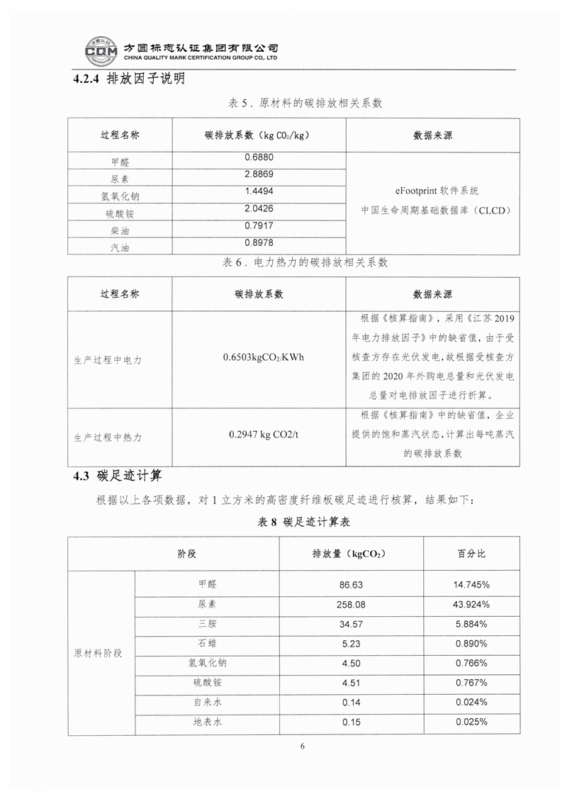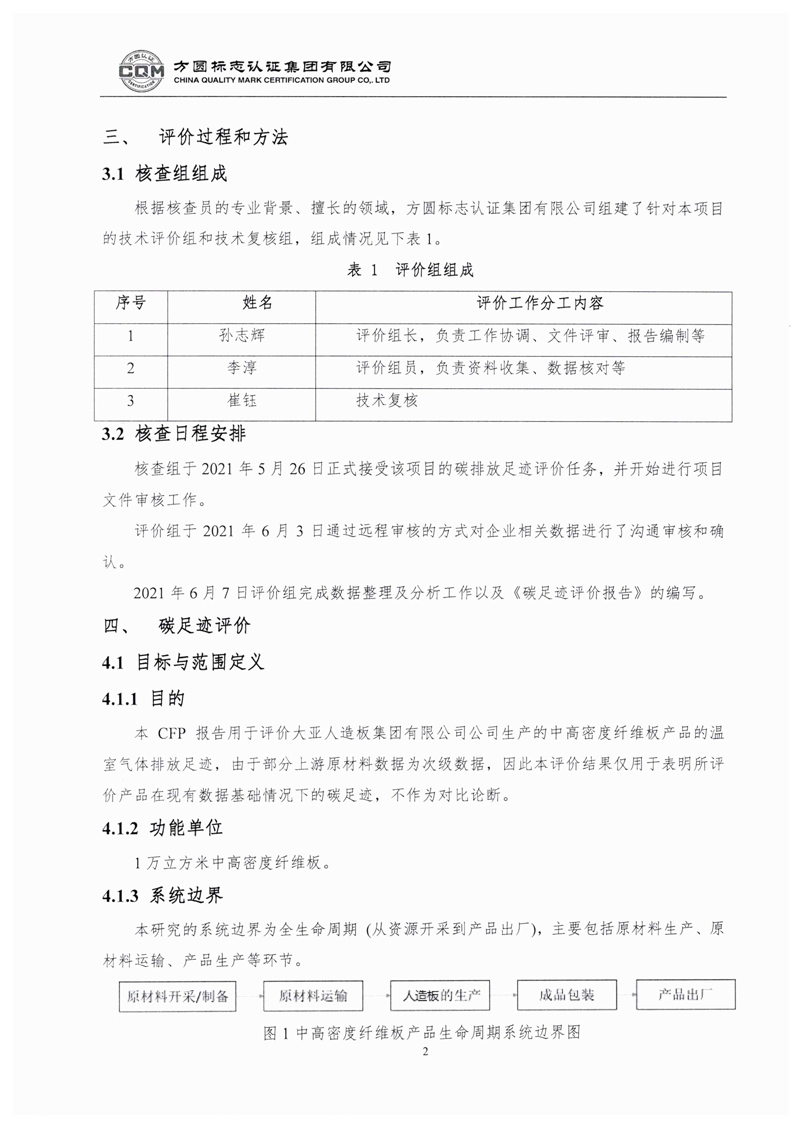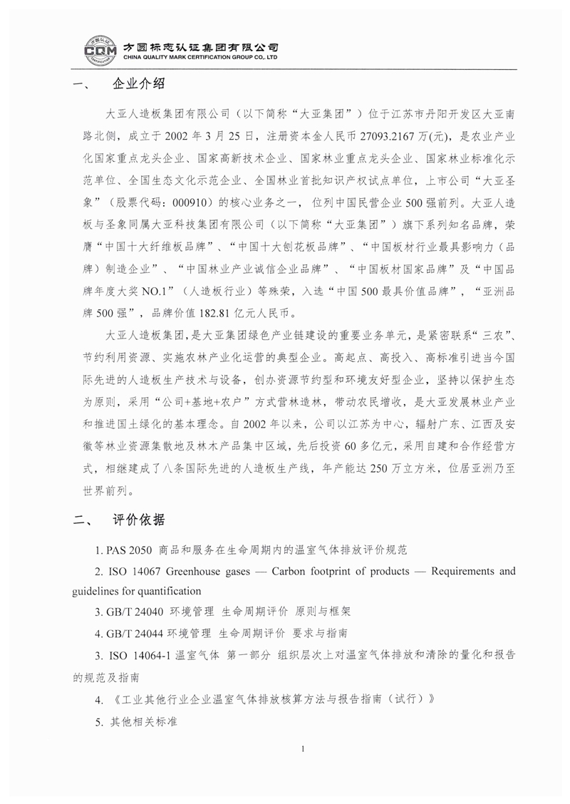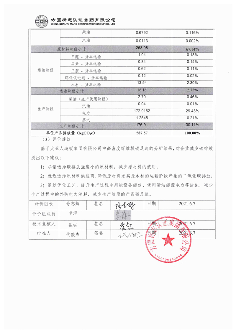 大亞人造板集團有限公司中高密度纖維板產(chǎn)品產(chǎn)品碳足跡評價報告自主公示