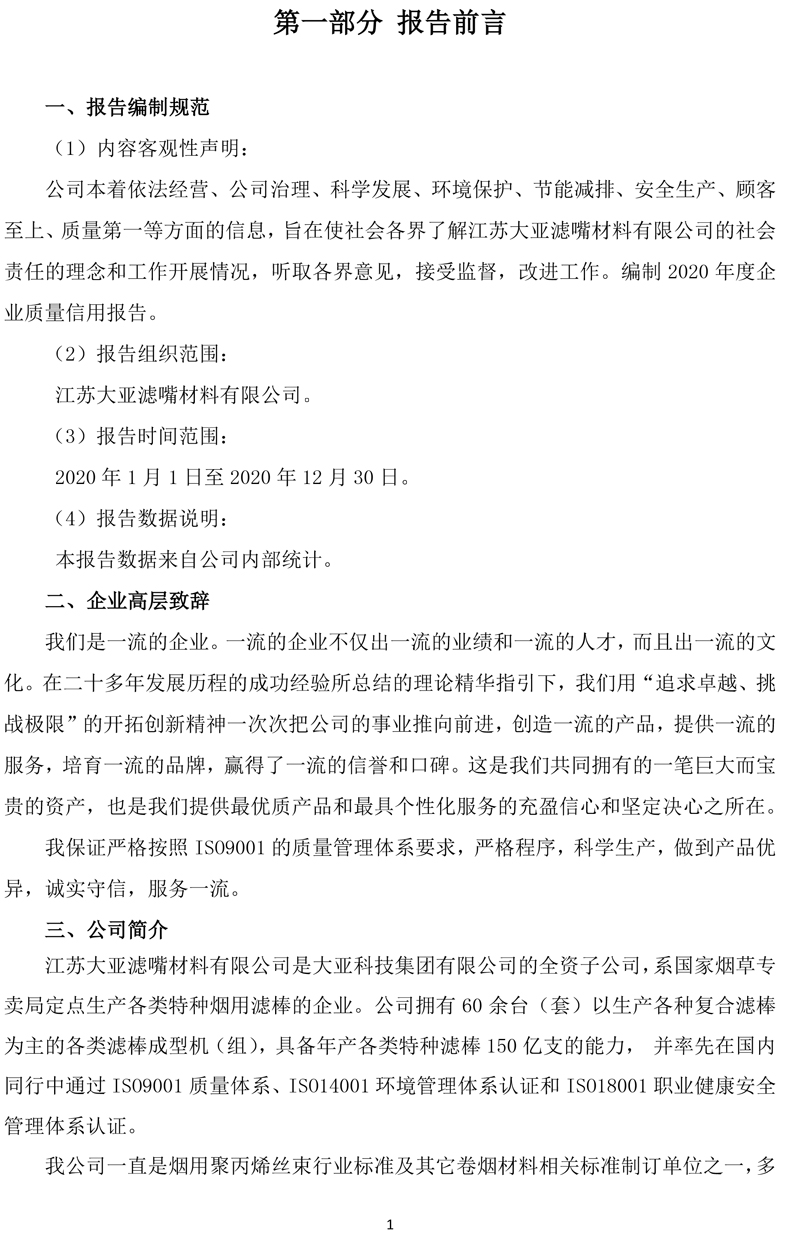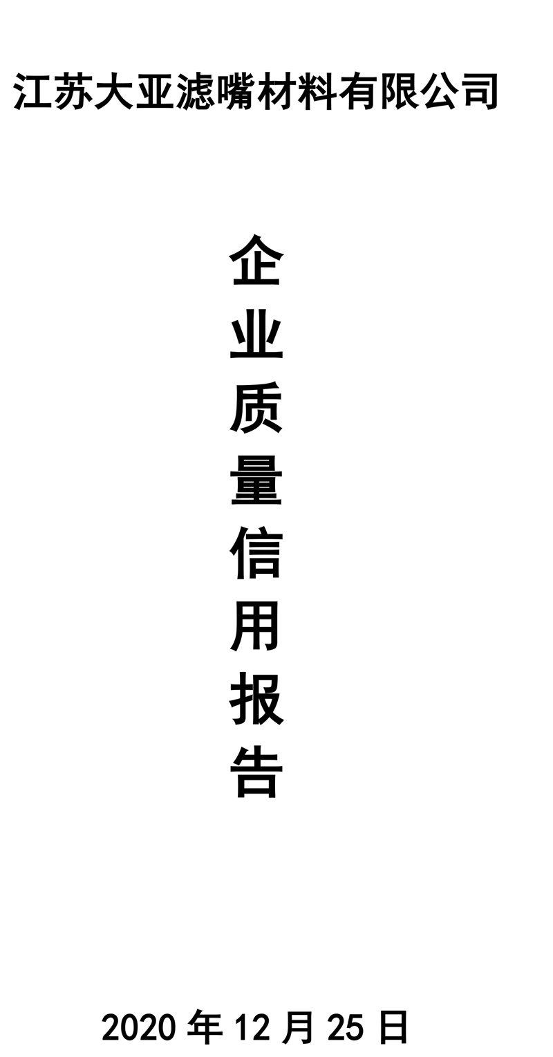 江蘇大亞濾嘴材料有限公司企業質量信用報告